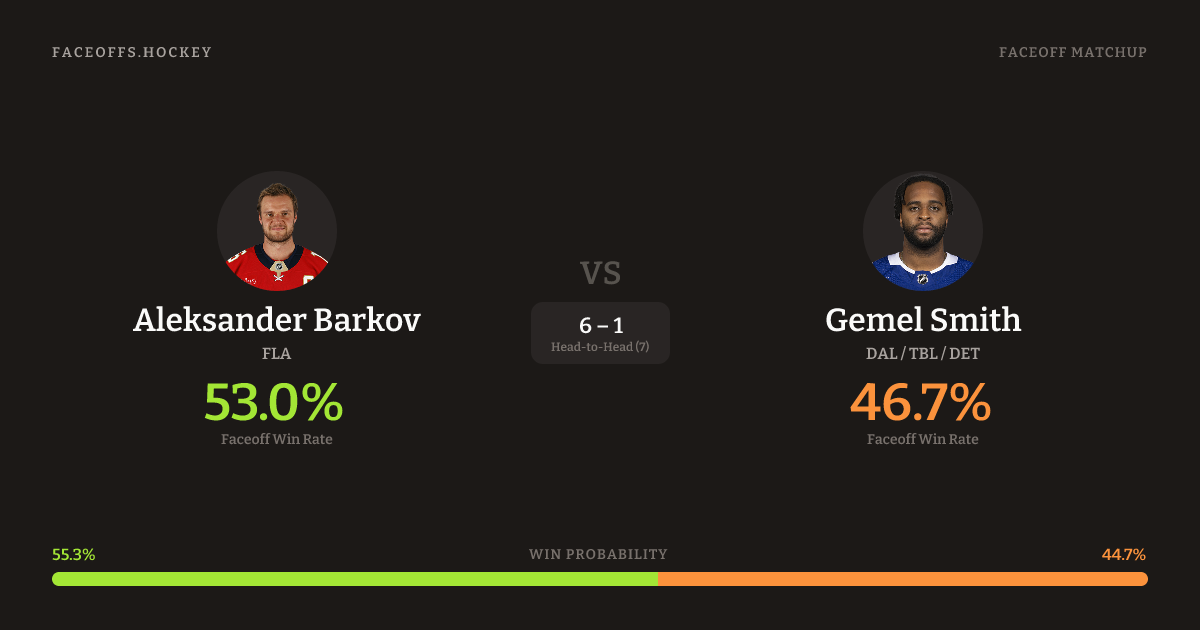Aleksander Barkov vs Gemel Smith — Faceoff Head-to-Head
