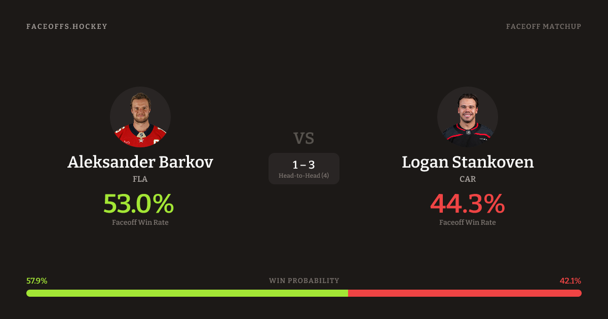 Aleksander Barkov vs Logan Stankoven — Faceoff Head-to-Head