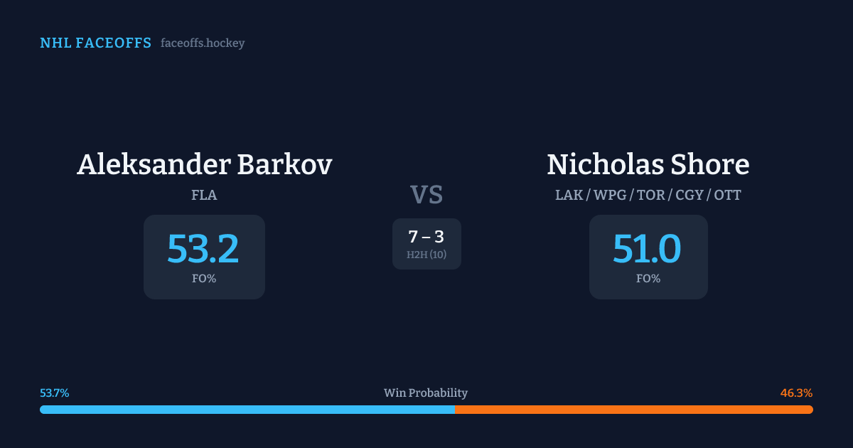 Aleksander Barkov vs Nicholas Shore — Faceoff Head-to-Head