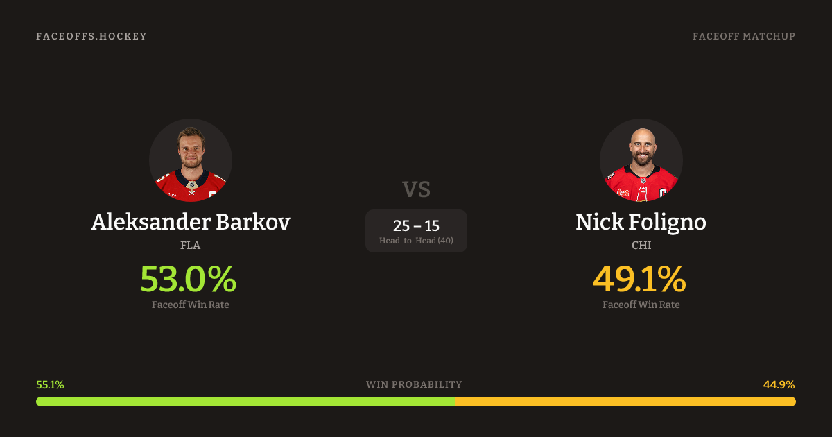 Aleksander Barkov vs Nick Foligno — Faceoff Head-to-Head