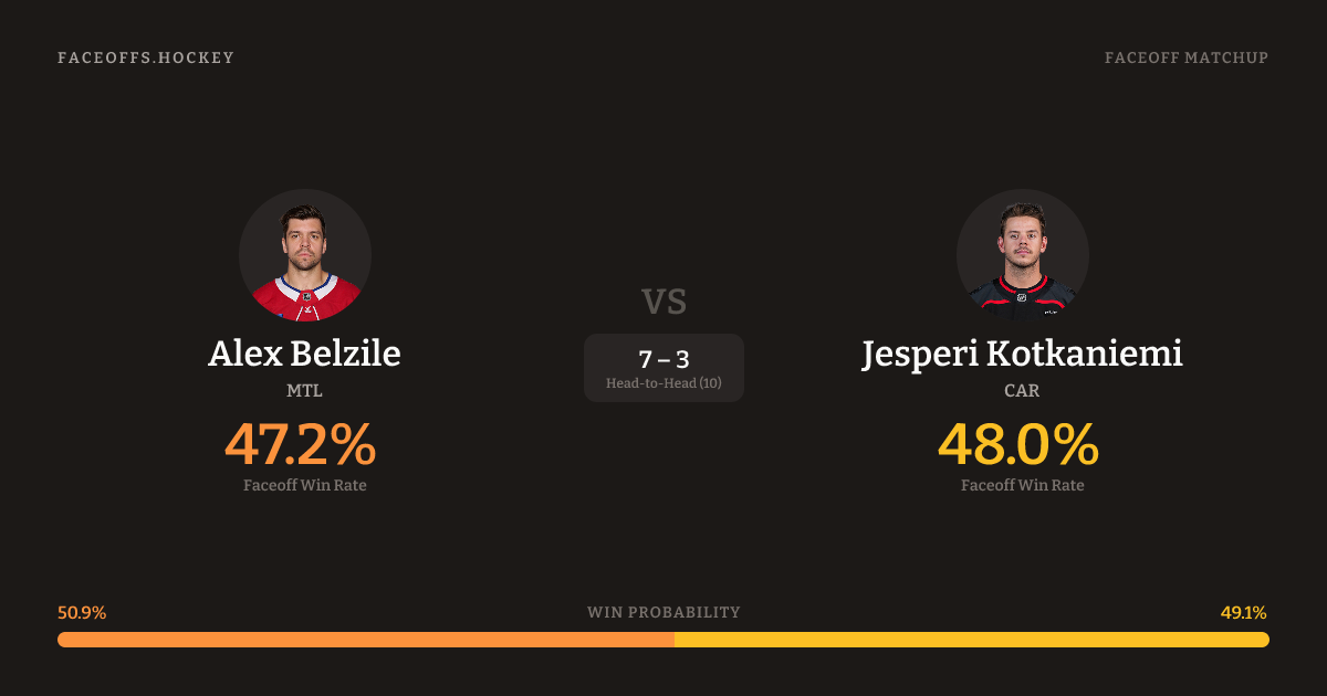 Alex Belzile vs Jesperi Kotkaniemi — Faceoff Head-to-Head