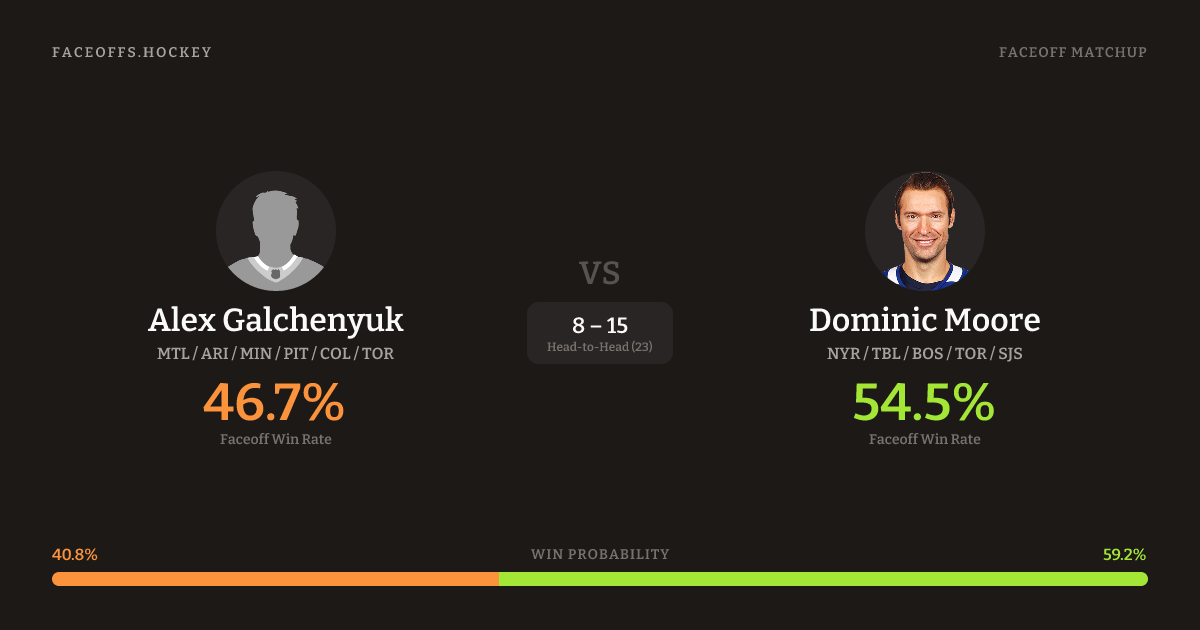 Alex Galchenyuk vs Dominic Moore — Faceoff Head-to-Head