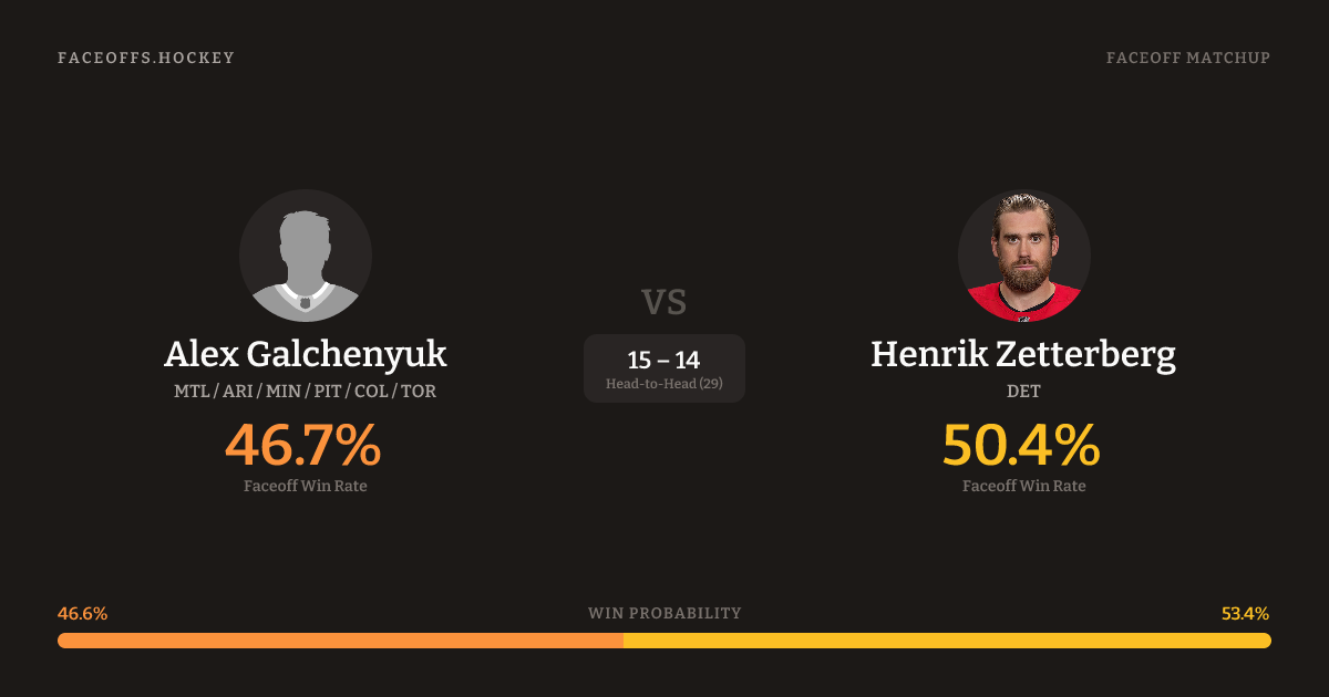 Alex Galchenyuk vs Henrik Zetterberg — Faceoff Head-to-Head