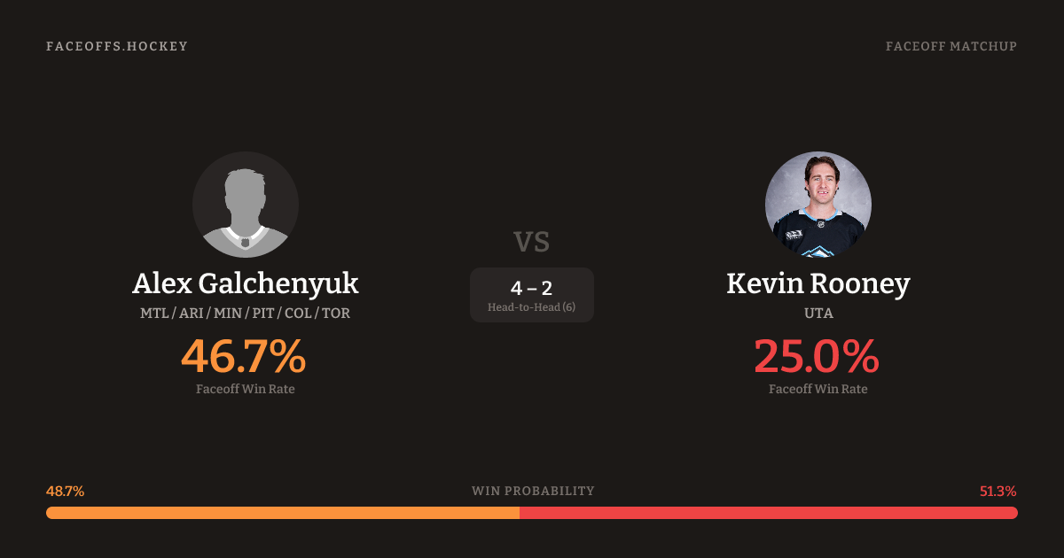 Rooney shoots left. Galchenyuk is 51.7% vs left-shot opponents (236).
