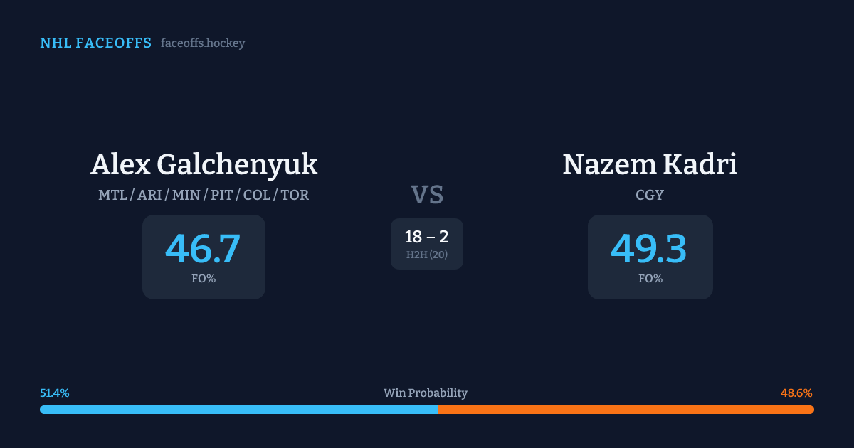 Alex Galchenyuk vs Nazem Kadri — Faceoff Head-to-Head