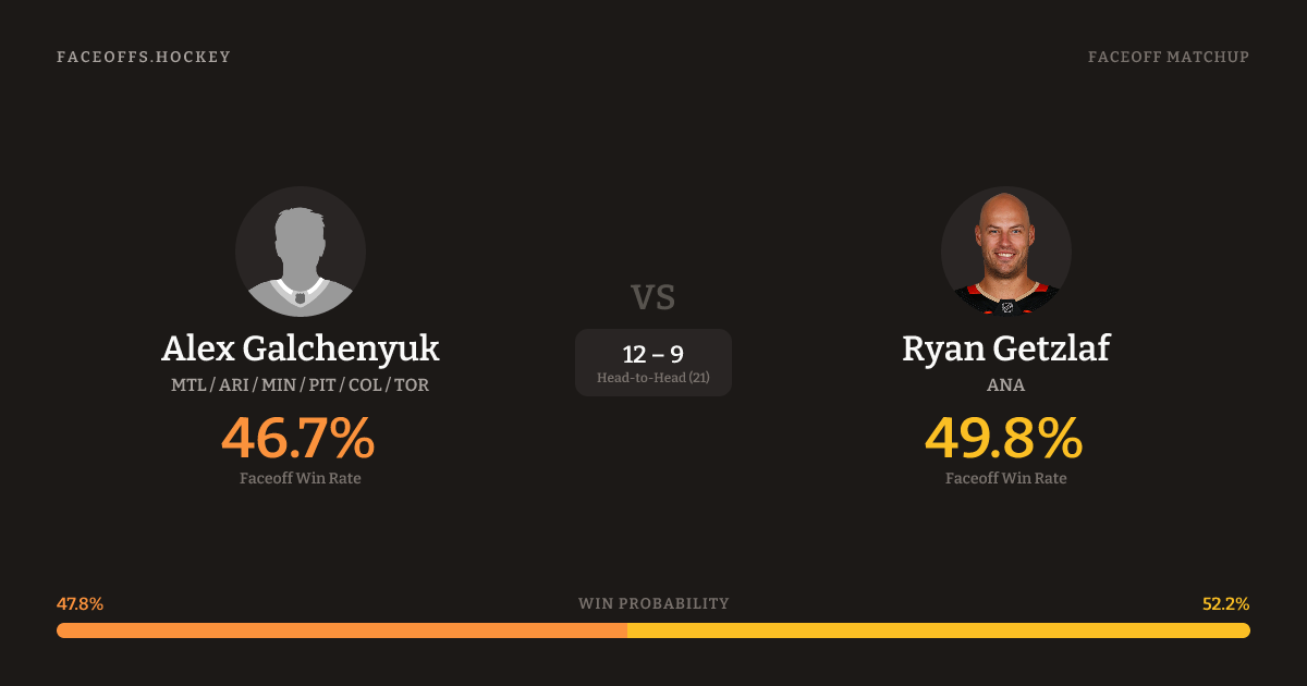 Galchenyuk 46.8% vs Getzlaf 49.8% (-3.1%)