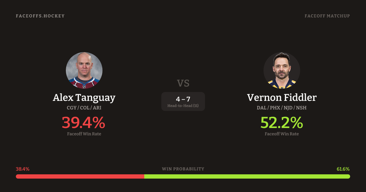 Alex Tanguay vs Vernon Fiddler — Faceoff Head-to-Head
