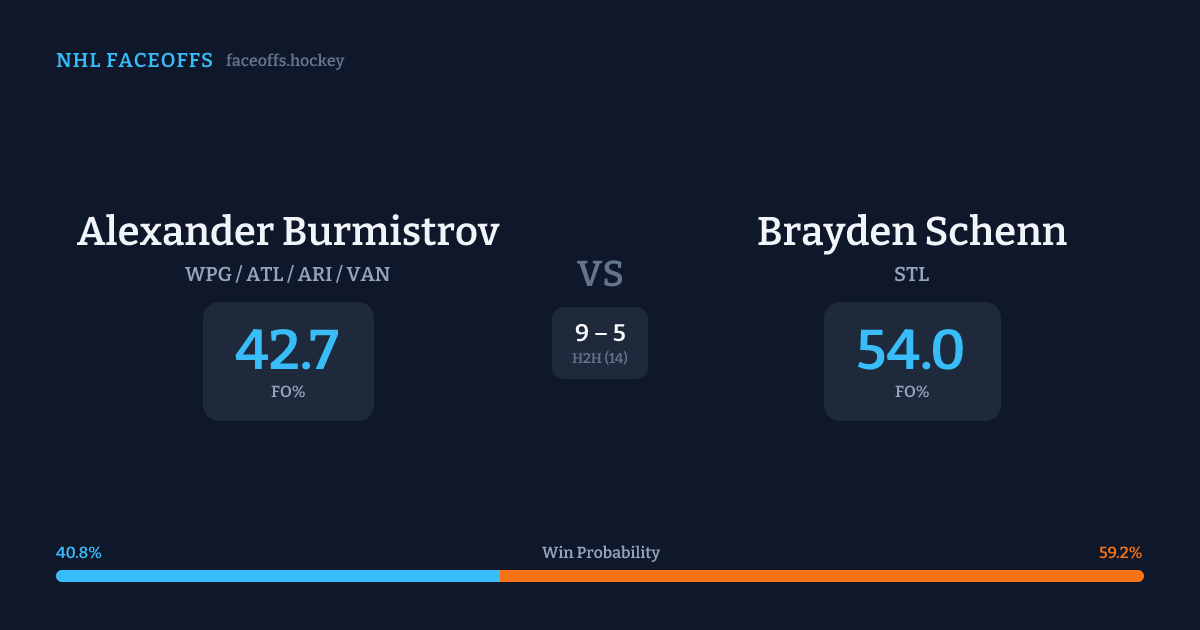 Alexander Burmistrov vs Brayden Schenn — Faceoff Head-to-Head