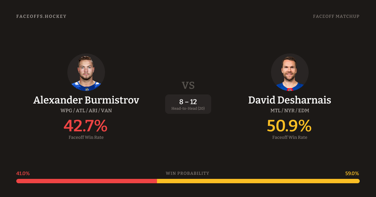 Alexander Burmistrov vs David Desharnais — Faceoff Head-to-Head