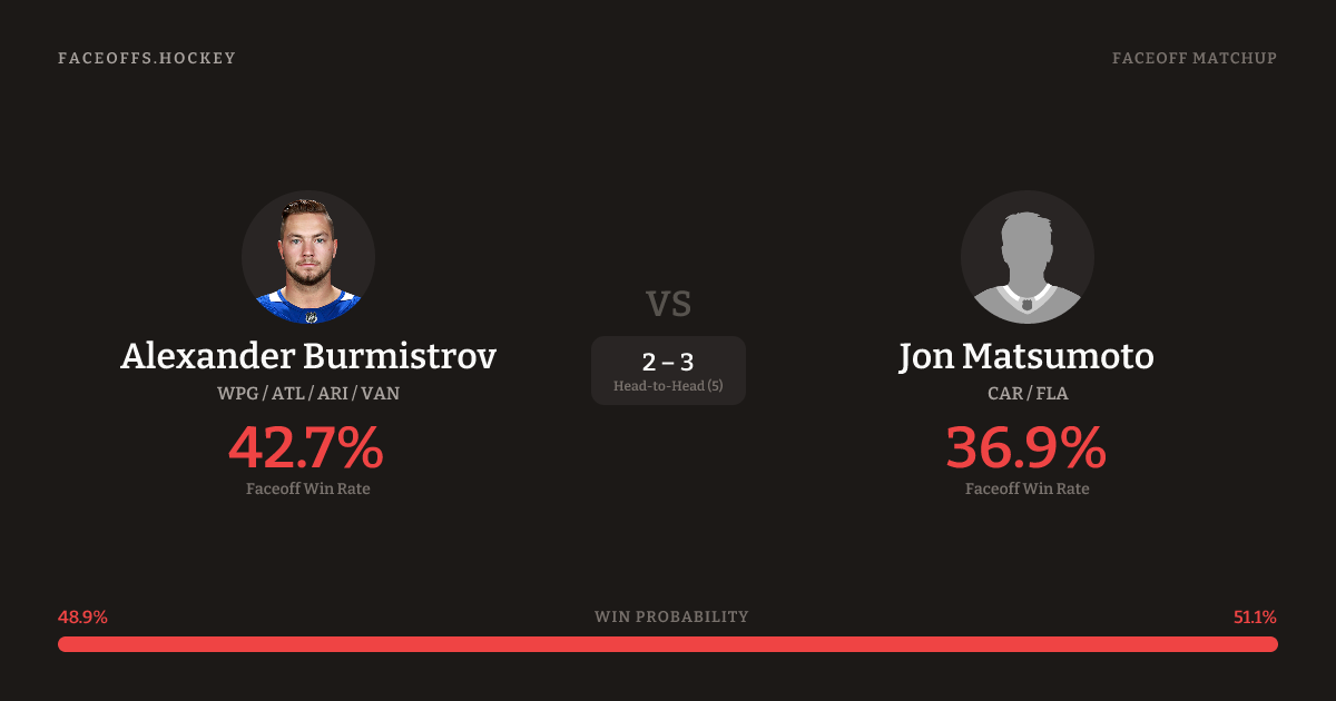 Alexander Burmistrov vs Jon Matsumoto — Faceoff Head-to-Head