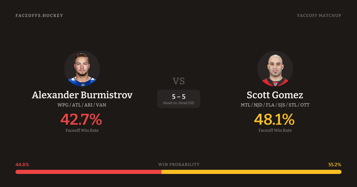 Alexander Burmistrov vs Scott Gomez — Faceoff Head-to-Head