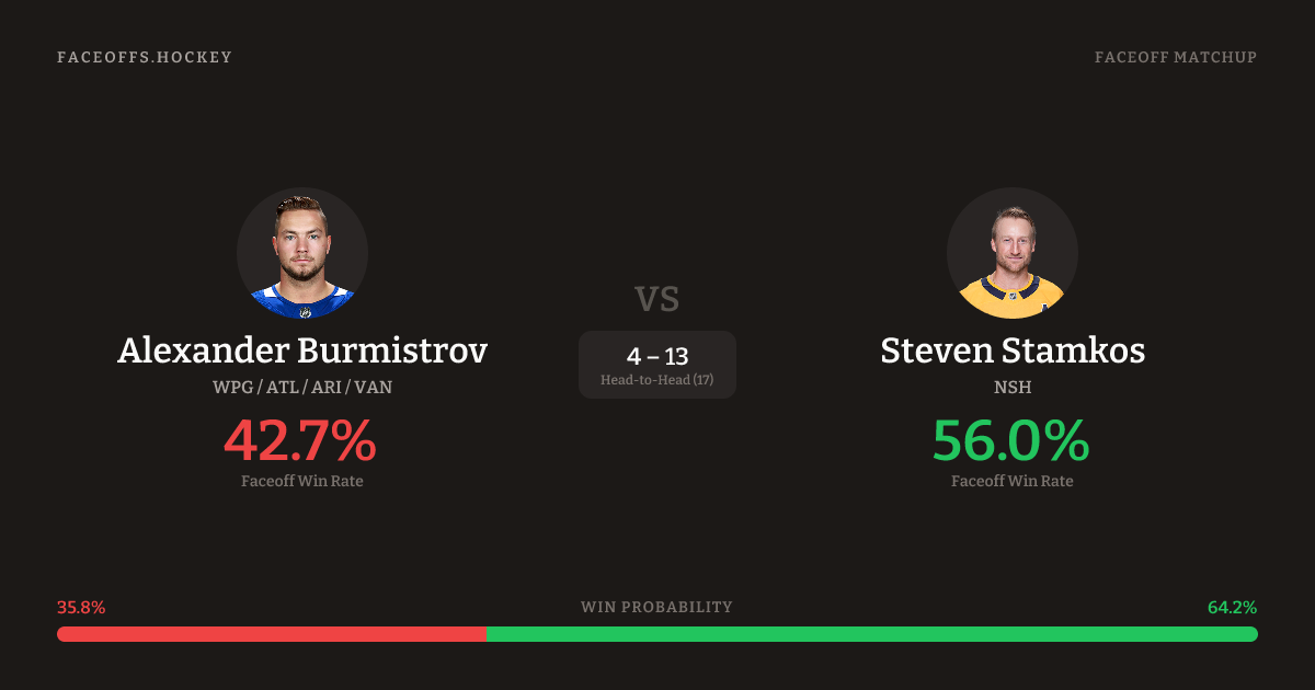 Alexander Burmistrov vs Steven Stamkos — Faceoff Head-to-Head