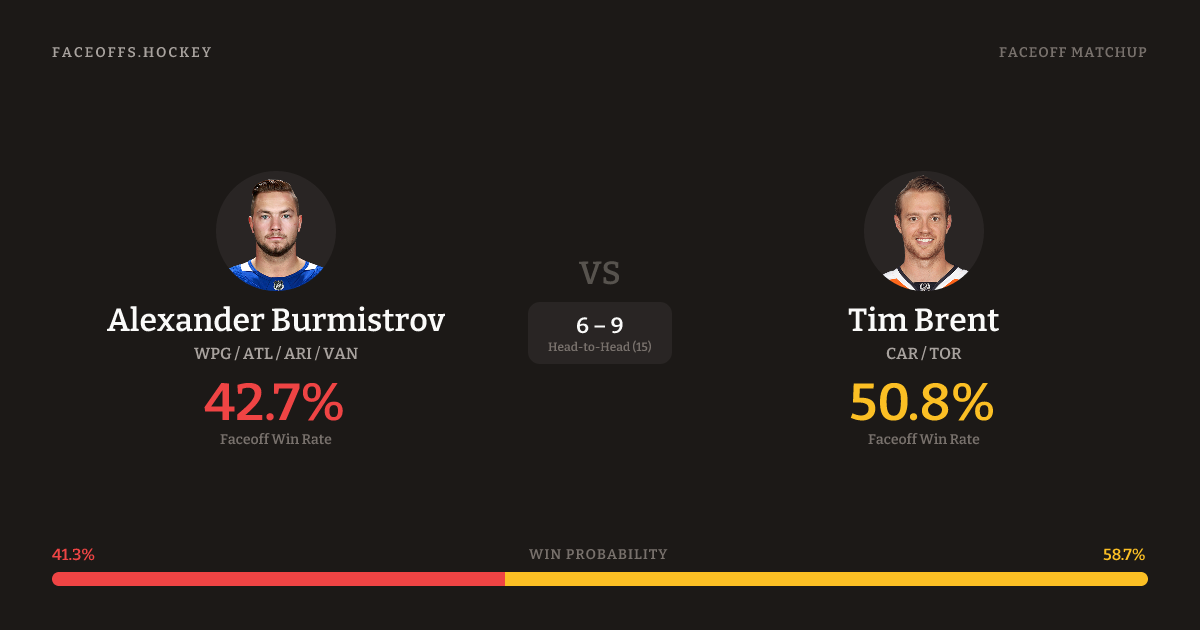 Alexander Burmistrov vs Tim Brent — Faceoff Head-to-Head