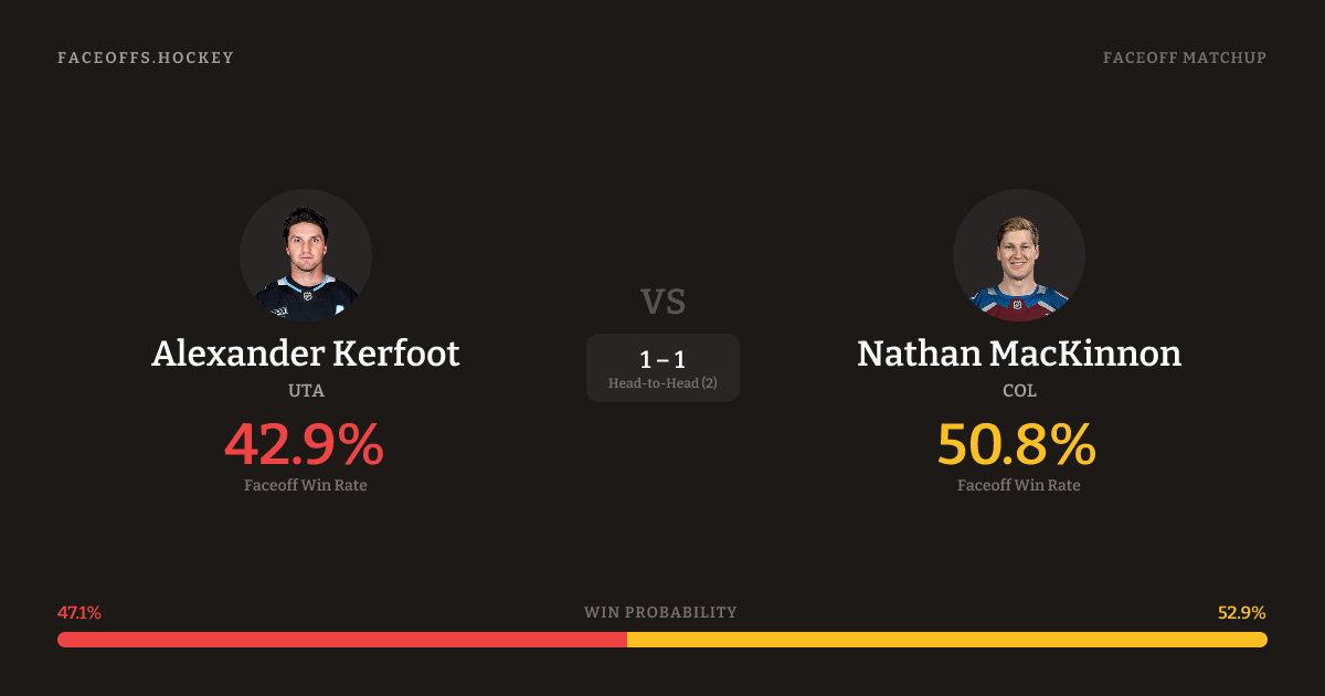 Alexander Kerfoot vs Nathan MacKinnon — Faceoff Head-to-Head