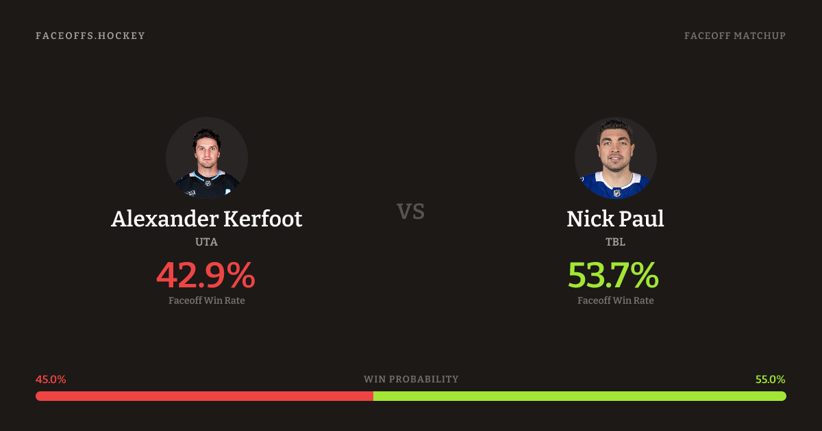 Alexander Kerfoot vs Nick Paul — Faceoff Head-to-Head