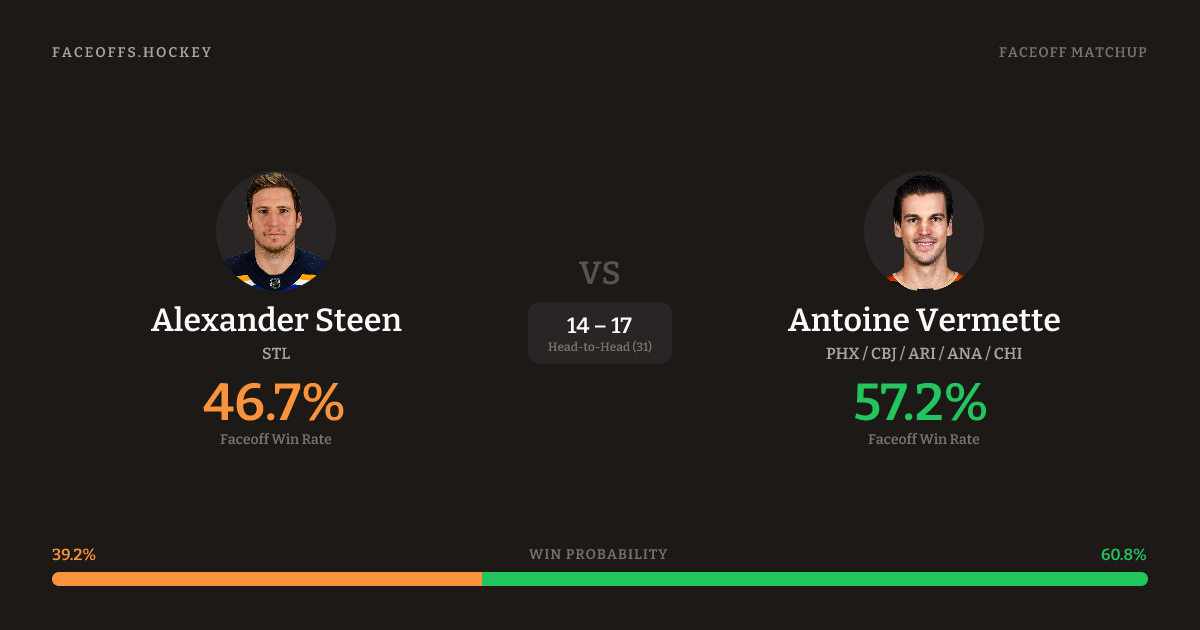 Alexander Steen vs Antoine Vermette — Faceoff Head-to-Head