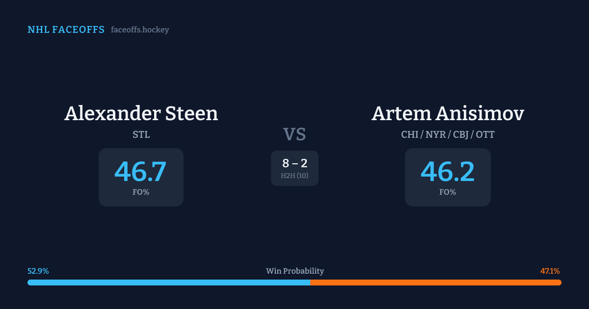 Alexander Steen vs Artem Anisimov — Faceoff Head-to-Head