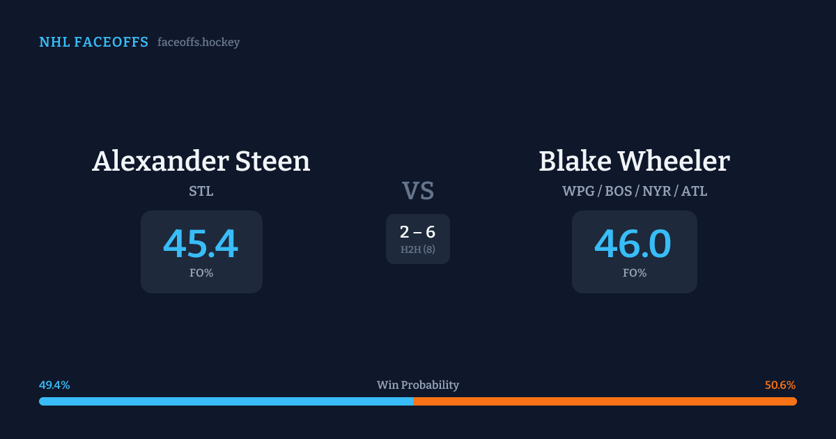 Alexander Steen vs Blake Wheeler — Faceoff Head-to-Head
