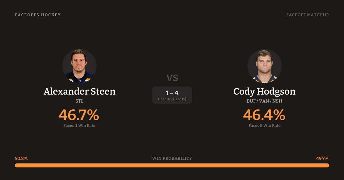 Alexander Steen vs Cody Hodgson — Faceoff Head-to-Head