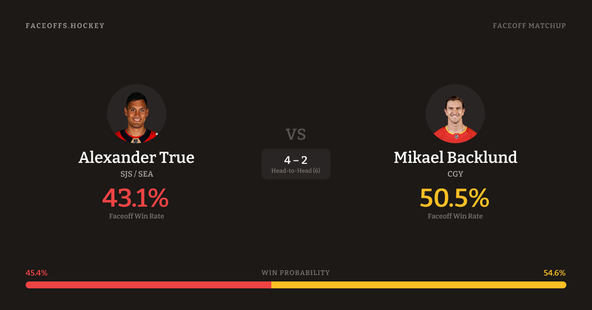 Alexander True vs Mikael Backlund — Faceoff Head-to-Head
