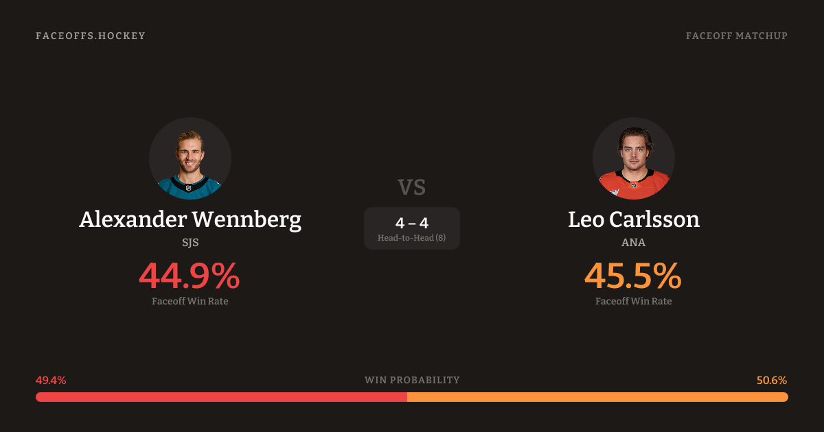 Carlsson shoots left. Wennberg is 50.3% vs left-shot opponents (786).