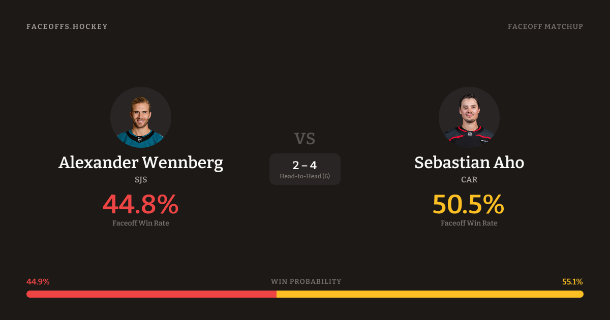 Alexander Wennberg vs Sebastian Aho — Faceoff Head-to-Head