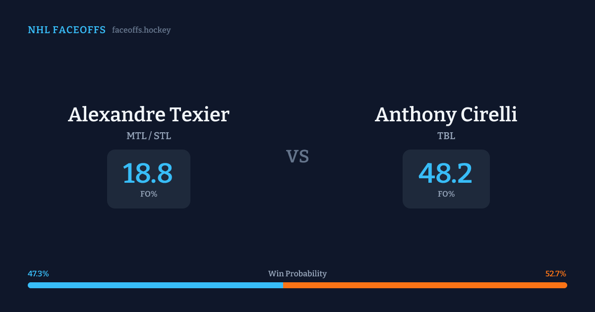 Alexandre Texier vs Anthony Cirelli — Faceoff Head-to-Head