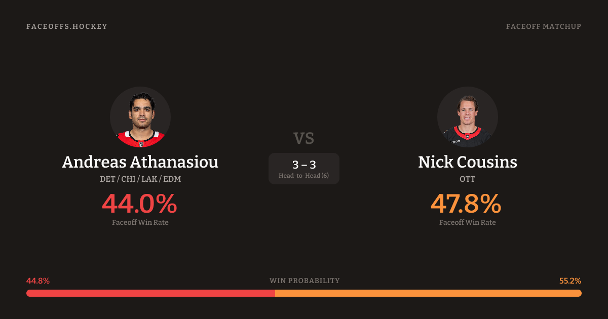 Andreas Athanasiou vs Nick Cousins — Faceoff Head-to-Head