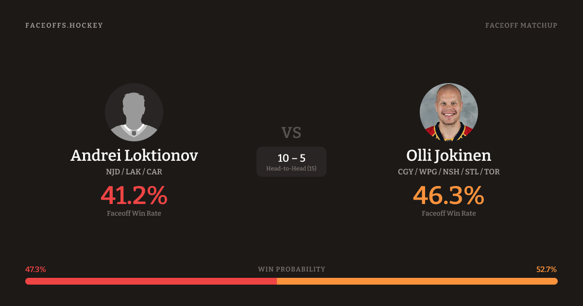 Andrei Loktionov vs Olli Jokinen — Faceoff Head-to-Head