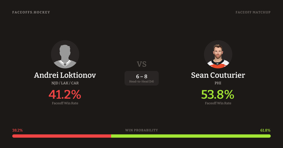 Andrei Loktionov vs Sean Couturier — Faceoff Head-to-Head