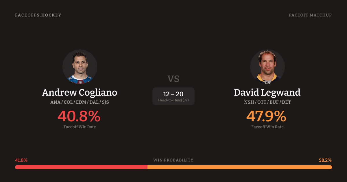 Andrew Cogliano vs David Legwand — Faceoff Head-to-Head