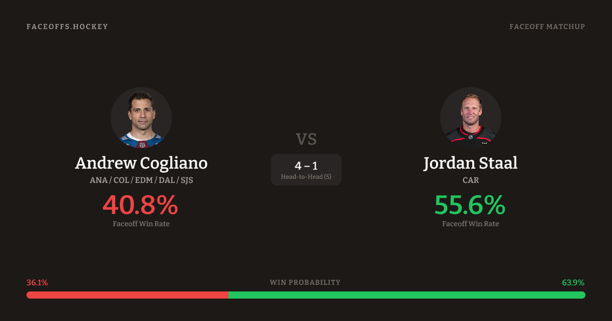 Andrew Cogliano vs Jordan Staal — Faceoff Head-to-Head