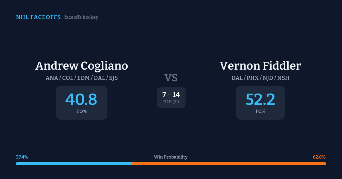 Andrew Cogliano vs Vernon Fiddler — Faceoff Head-to-Head