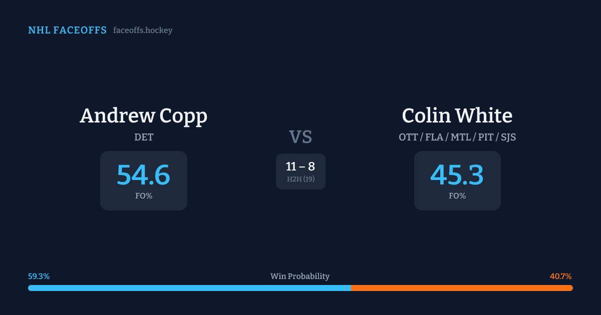 Andrew Copp holds a +10.7% FO% edge overall. Look for White on neutral-zone draws (75% H2H, 4 meetings).