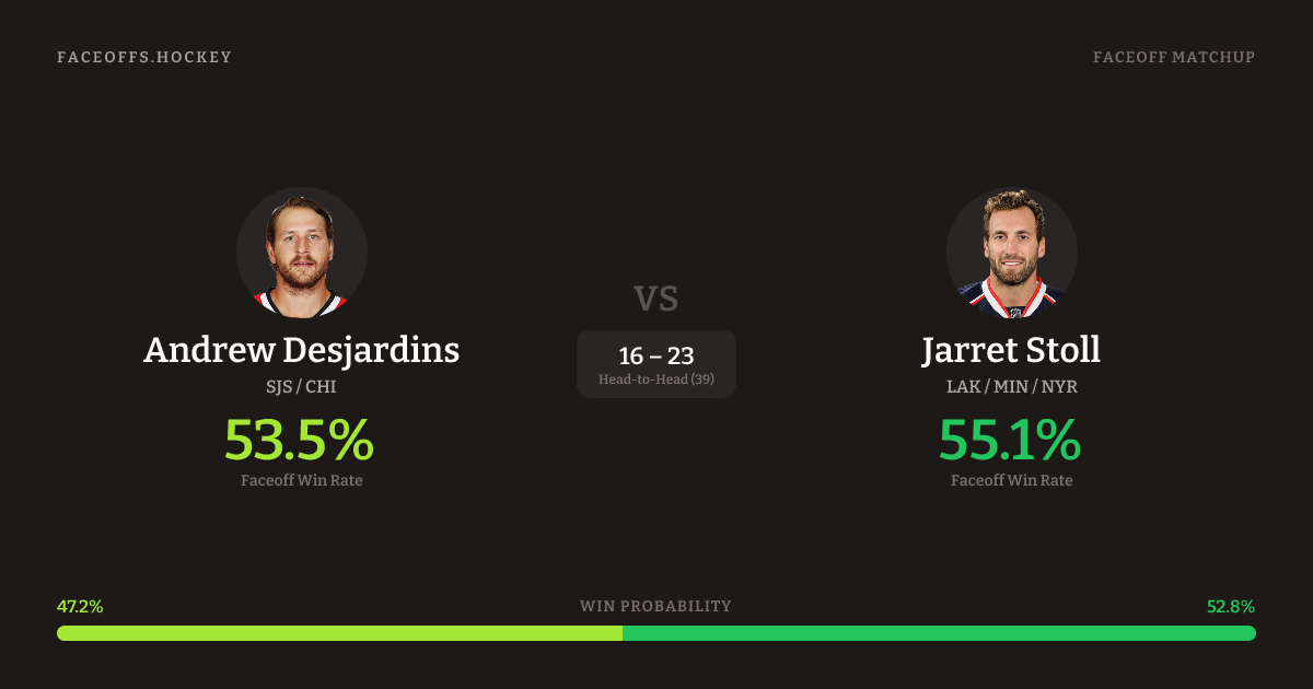 Andrew Desjardins vs Jarret Stoll — Faceoff Head-to-Head