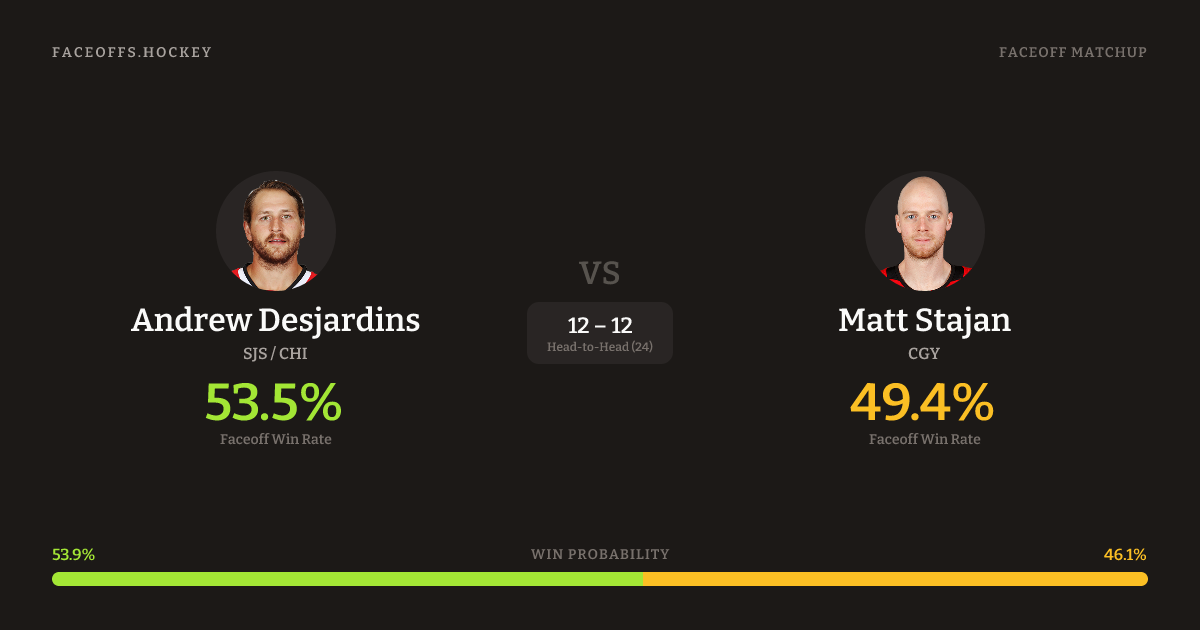 Andrew Desjardins vs Matt Stajan — Faceoff Head-to-Head