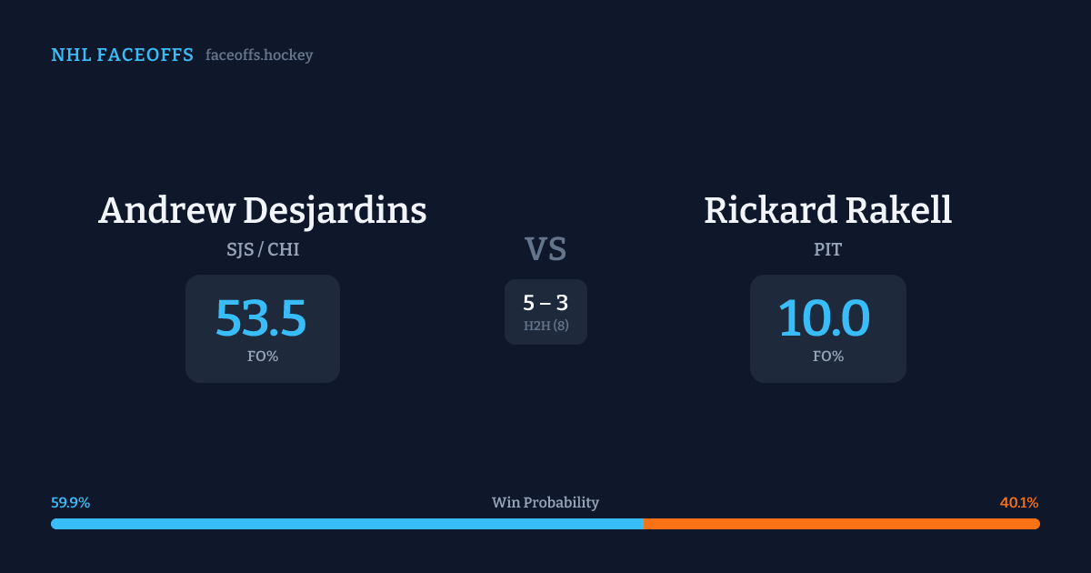Andrew Desjardins vs Rickard Rakell — Faceoff Head-to-Head