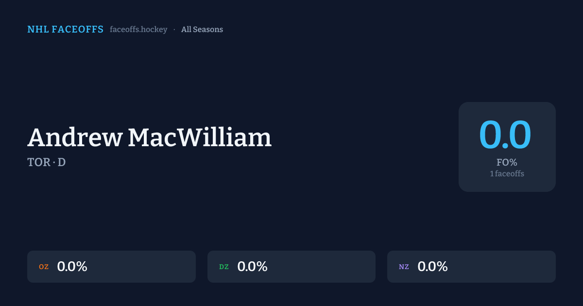 Andrew MacWilliam has a career faceoff win percentage of 0.0% across 1 faceoffs. Best zone: Neutral (0.0%).
