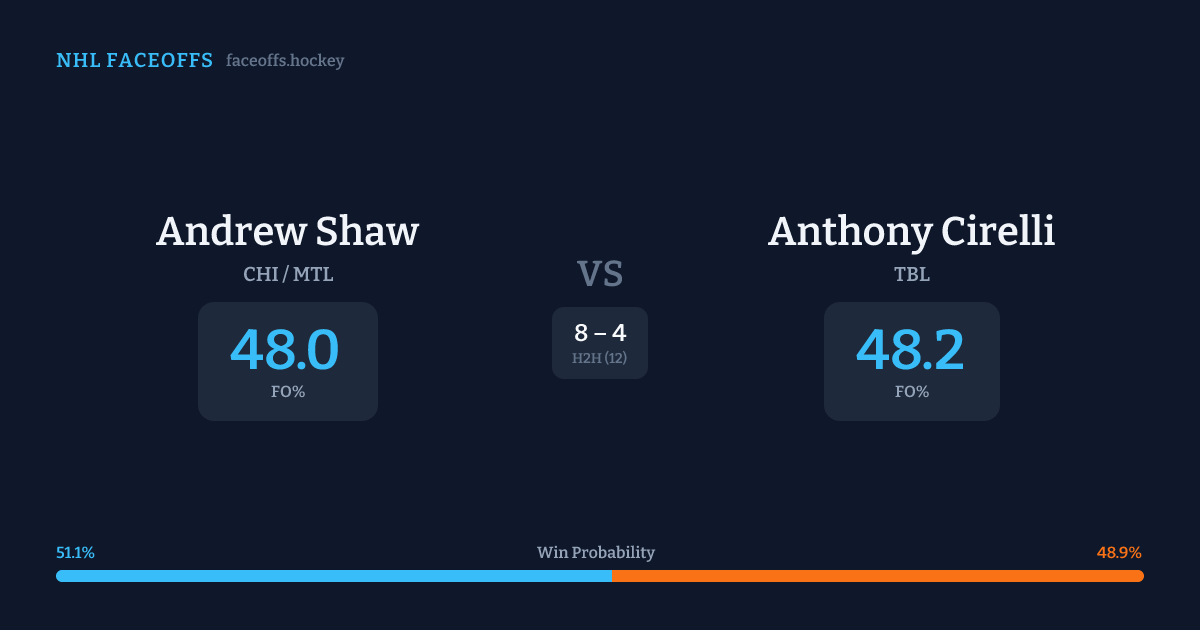 Andrew Shaw vs Anthony Cirelli — Faceoff Head-to-Head