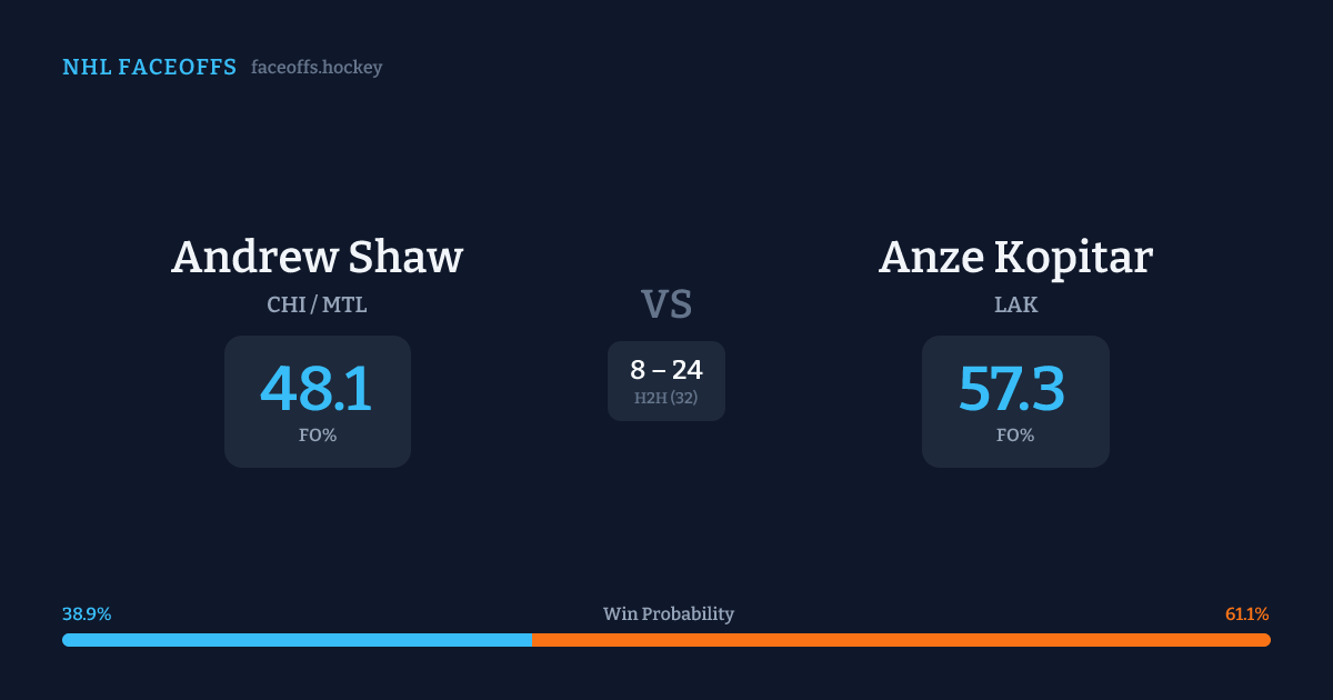 Andrew Shaw vs Anze Kopitar — Faceoff Head-to-Head