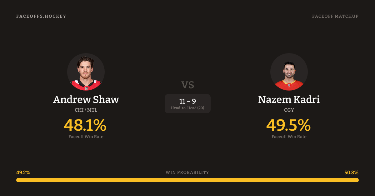 Andrew Shaw vs Nazem Kadri — Faceoff Head-to-Head