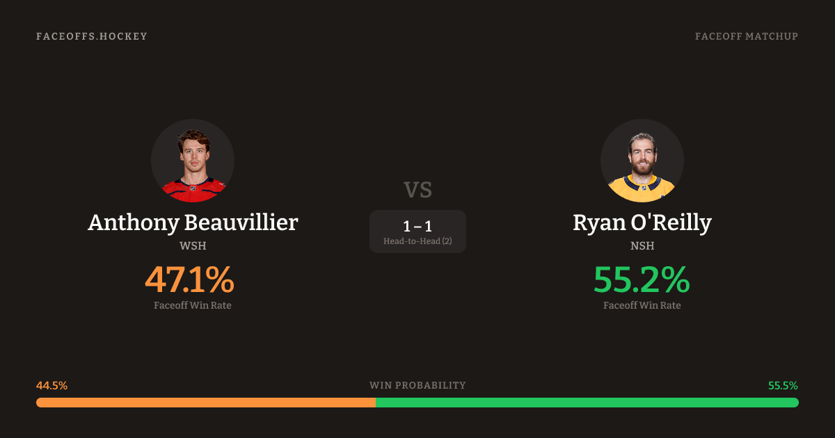 Anthony Beauvillier vs Ryan O'Reilly — Faceoff Head-to-Head