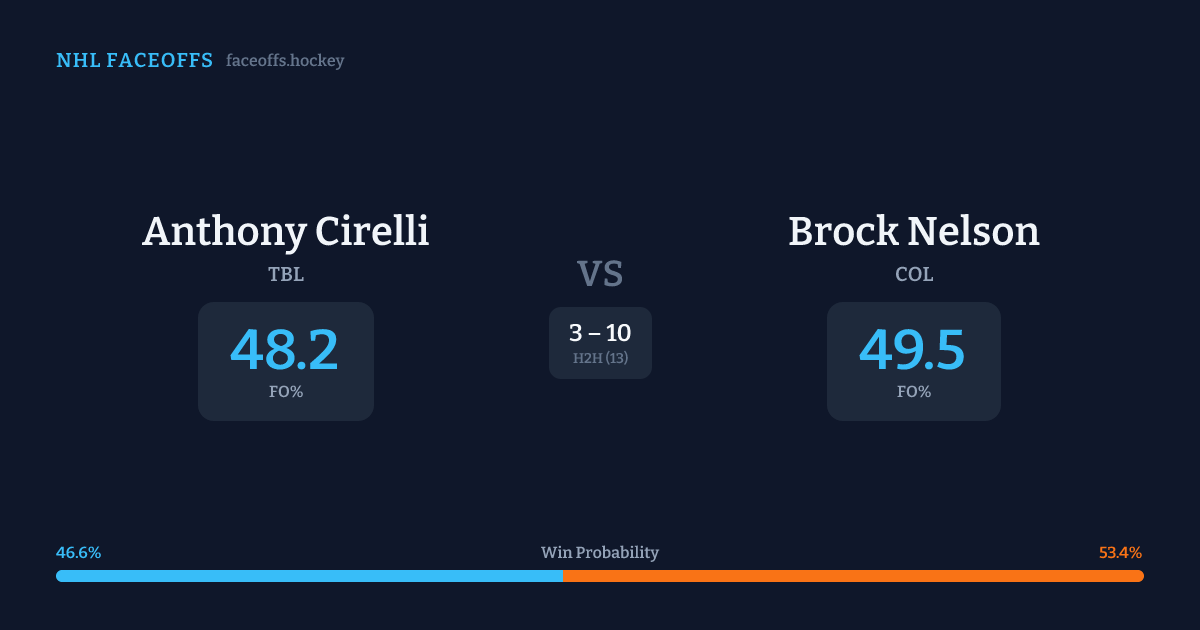 Anthony Cirelli vs Brock Nelson — Faceoff Head-to-Head