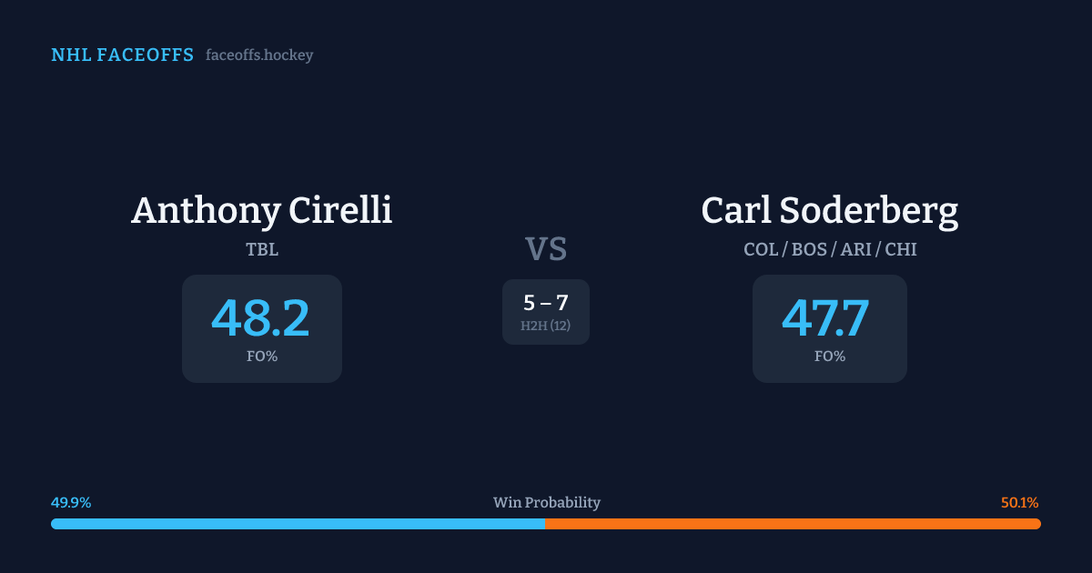 Anthony Cirelli vs Carl Soderberg — Faceoff Head-to-Head