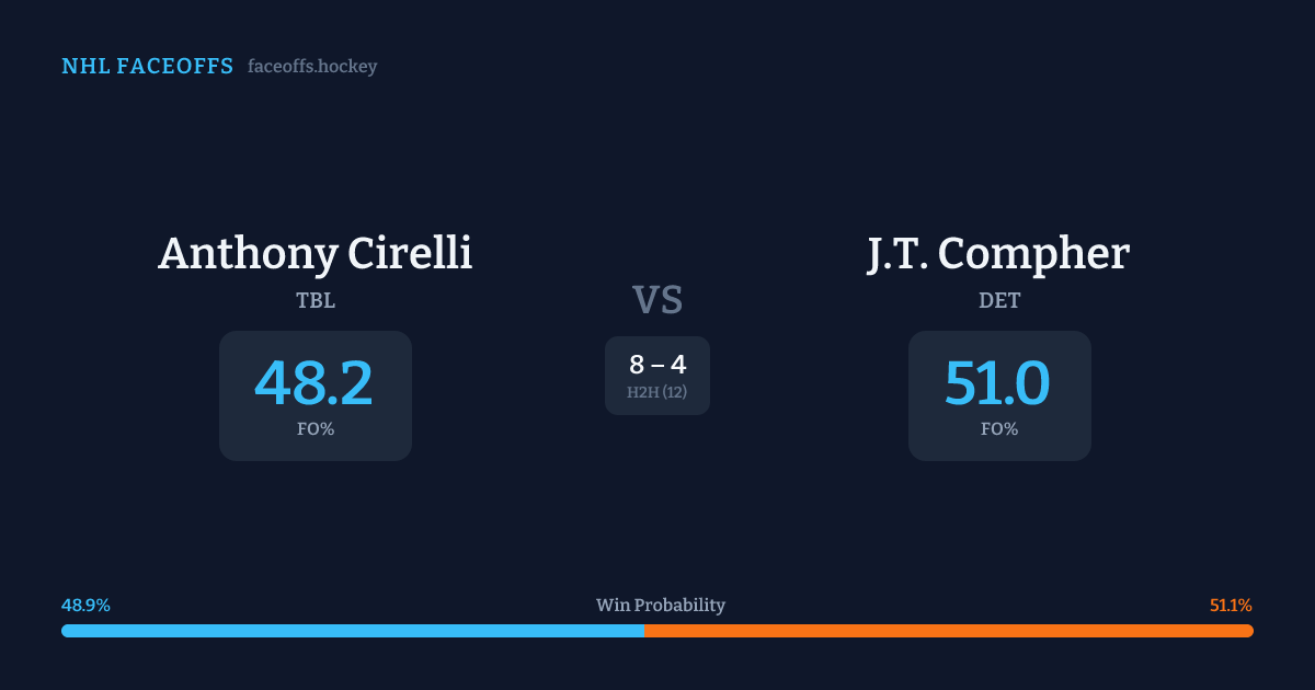 Anthony Cirelli vs J.T. Compher — Faceoff Head-to-Head