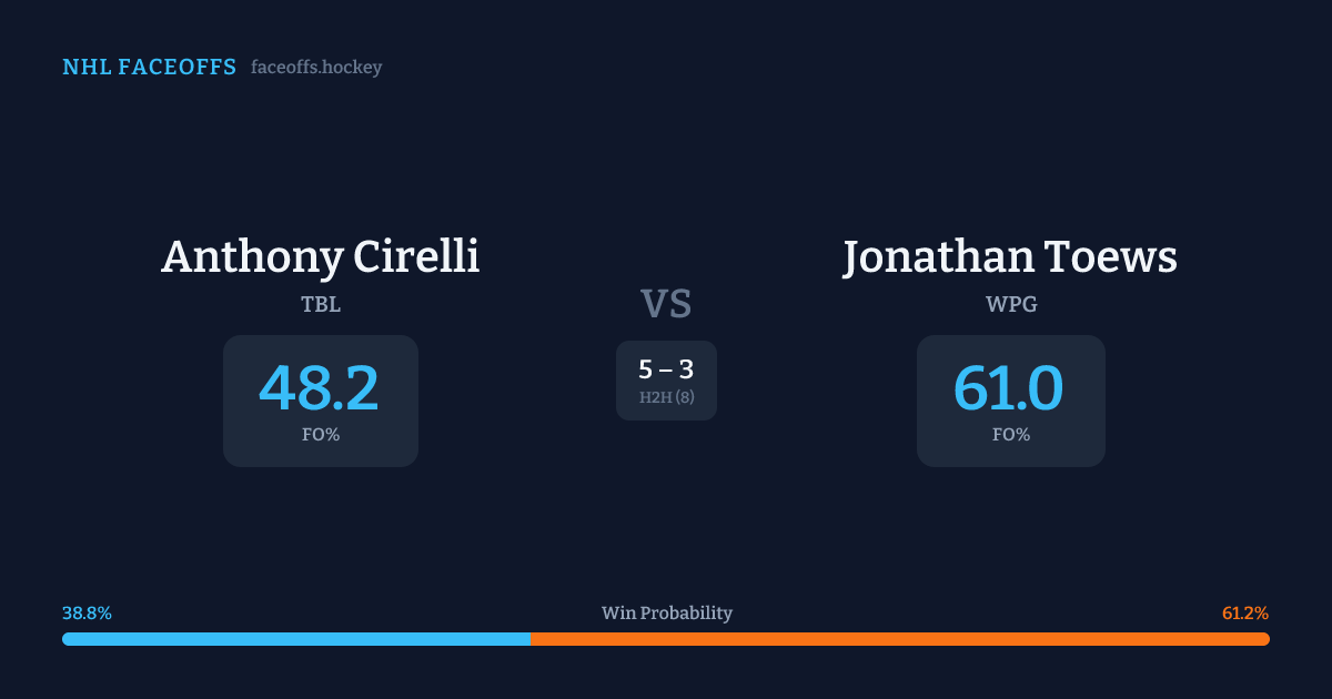 Anthony Cirelli vs Jonathan Toews — Faceoff Head-to-Head