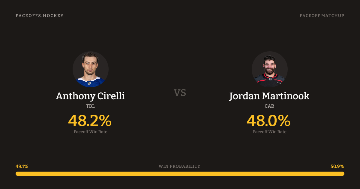 Anthony Cirelli vs Jordan Martinook — Faceoff Head-to-Head