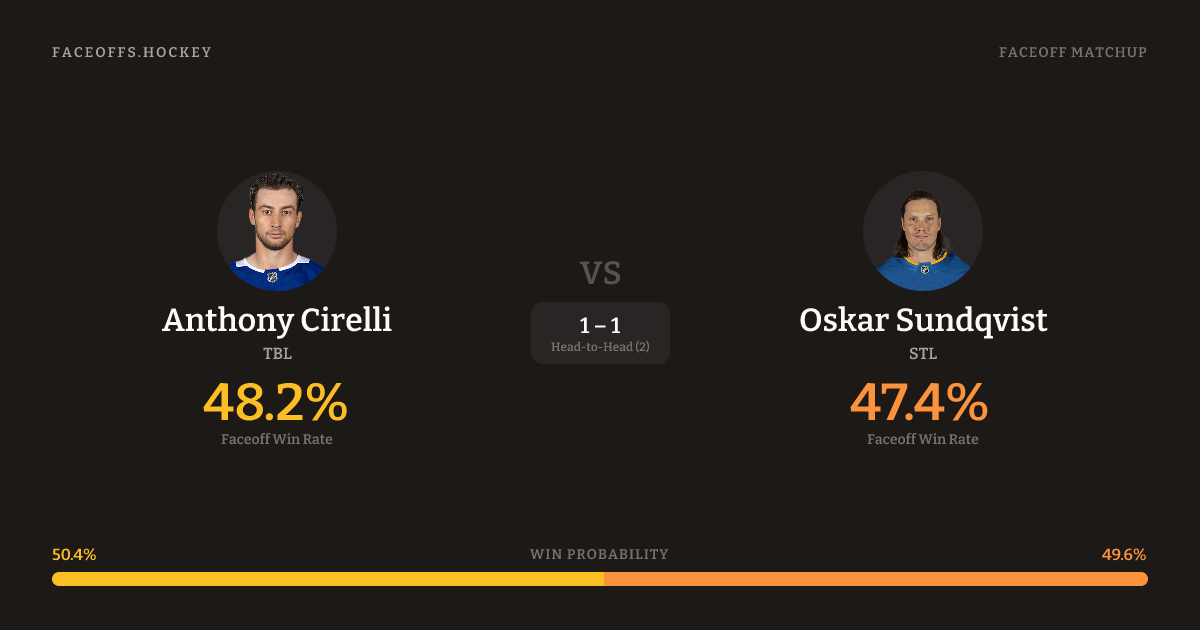 Anthony Cirelli vs Oskar Sundqvist — Faceoff Head-to-Head