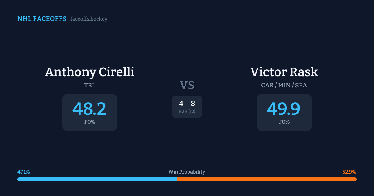 Anthony Cirelli vs Victor Rask — Faceoff Head-to-Head