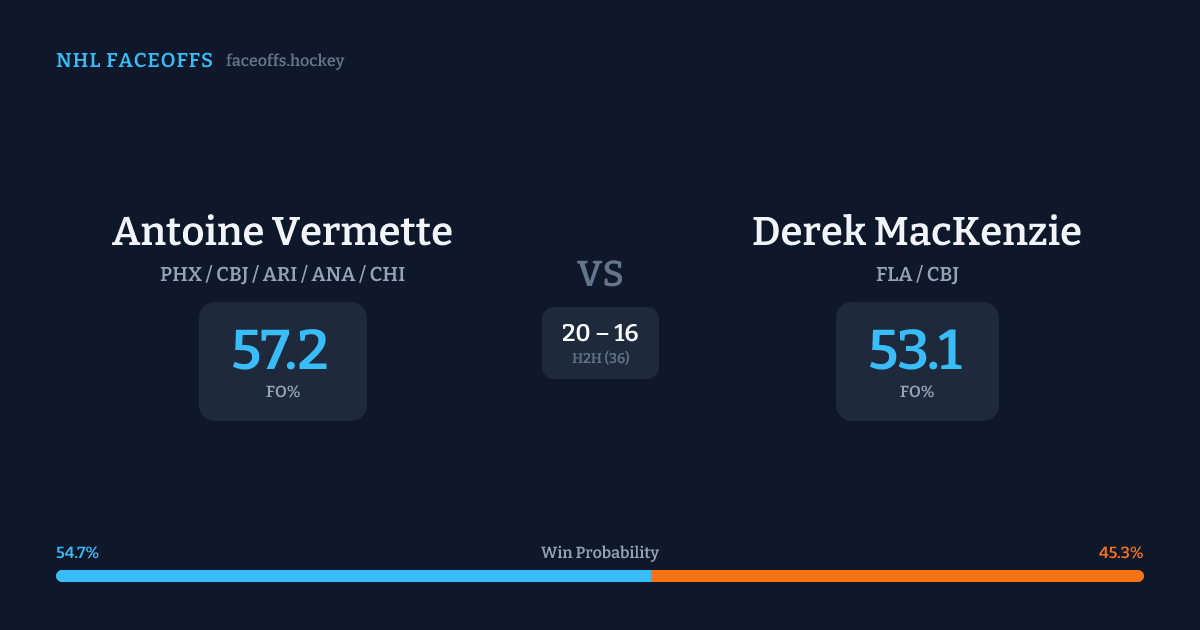 Antoine Vermette vs Derek MacKenzie — Faceoff Head-to-Head
